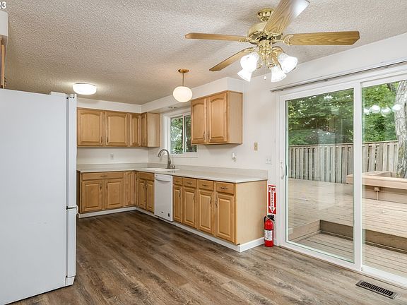 Spacious one level ranch in desirable Tualatin neighborhood. Sun drenched kitchen with eating nook. Large corner lot with sizeable front yard and mature landscaping. New custom stamped concrete landing and driveway. Offers central A/C, new roof, exterior paint and lights. Oversized utility room with tons of storage. New triple pane windows and sliding glass door. Newly updated garage with Webfoot concrete coating, new opener, door, and tankless water heater. Huge deck with built in hot tub, perfect for entertaining! Close to parks, bike paths, and Tualatin Country Club nearby.