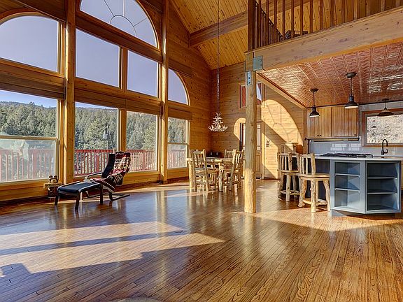 Gorgeous views from every window! Custom cedar log accented home with southern exposure - and no neighbors in sight! Step outside...magnificent scenery and extensive deck surrounding the home. Immediately upon entering you will be amazed by the soaring ceilings and the huge wall of windows bringing the serenity of the forest into everyday living. Gleaming oak floors throughout the house. Master retreat w/ private balcony, loft/office. Beautifully updated master bath featuring Jacuzzi jetted soaking tub, brand new shower tile and doors along with new fixtures and quartz countertops. First floor has two large bedrooms sharing a full bath w/ new countertops. Large living area and gourmet kitchen featuring Jen-Air stove, Bosch dishwasher, large island, new quartz countertops throughout. Great for entertaining. Lower level features a mother-in-law apartment with a full bath, Murphy bed, separate sink, microwave and mini-fridge. Private entrance to come and go. Newer energy efficient heating system (2016), water heater (2016), new well pump (2014), new interior & exterior paint (2019), new front deck stairs (2019), and much more. Plus large 250sqft bonus workshop and small wood storage. Asphalt drive off fully paved county road. This beautiful house is nestled on 35+ acres surrounded by breathtaking mountain views, but just 8 minutes from C470 and Kipling...the best of both worlds!