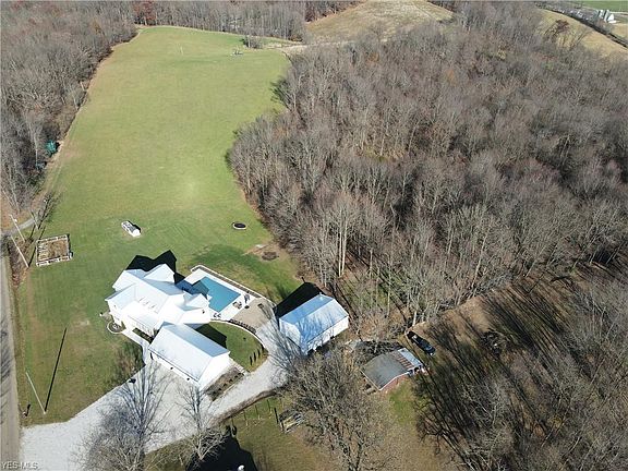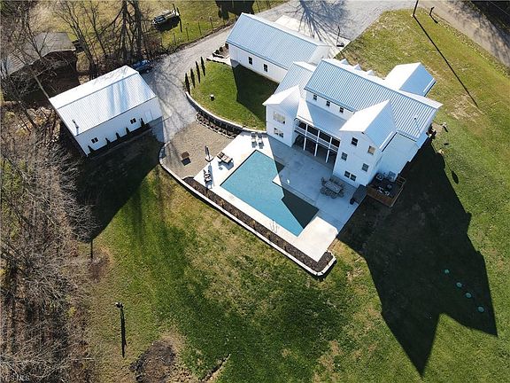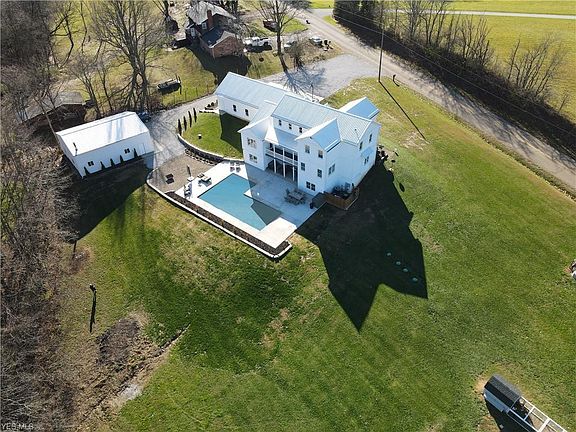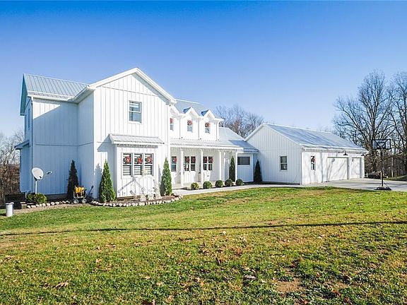 Custom Farmhouse style home built in 2017 includes 5270 sq ft of living space w/full walk out lower level all nestled on 2.57 acres with new in-ground pool & wooded views! This quality home looks like its from a magazine w/attention to every detail. The front porch invites you into this open floor plan home w/many windows for natural lighting & wood flooring throughout! The 2 story great room w/vaulted ceiling overlooks the backyard. Entertain friends/family in the amazing kitchen that boasts granite counter tops/custom cabinets/under-cabinet lighting/stainless appliances & huge center island. Dining area has access to a covered porch for grilling or relaxing. Half bath, laundry, mudroom/storage area & private home office. The first floor owners suite includes 2 walk in closets/full luxury bath w/large tiled shower & soaking tub. 2nd bedroom w/closet/plenty of storage. The second level features an open staircase & loft area. 3rd bedroom w/closet, Jack n Jill Bath, 4th Bedroom w/closet. 5th Bedroom w/closet & full bath. Finished Walkout Lower Level Features family/media room, rec room, half bath and large exercise room, storage room and walks out to a spacious patio/firepit area, large inground pool w/tanning ledge and plenty of space for entertaining! Attached oversized 3 car garage plus 30x40 heated building w/10ft door for 4 car storage/RV/man cave or home based business. The rural setting has raised garden and beautiful year round views just minutes from town or highway.