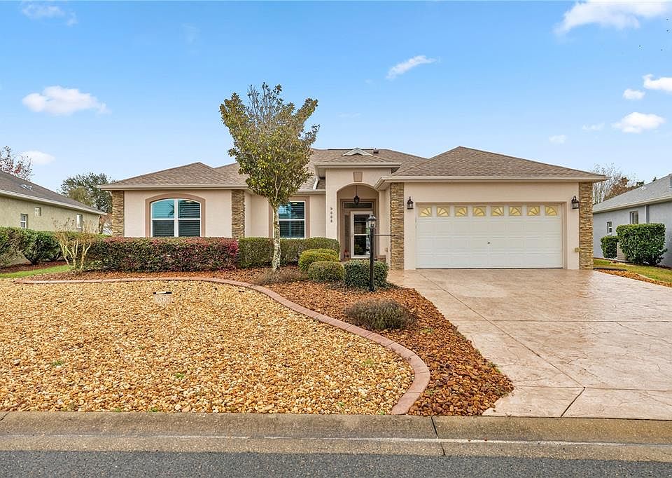 This home is a remarkable opportunity for anyone seeking luxury, comfort, and value in a beautifully maintained community. Located at On Top Of The World Ocala FL, this Expanded Essex Model single-family home features 3 bedrooms, 2 bathrooms, and a 2-car garage. The home is an exceptional find, showcasing over $100,000 in upgrades, including a new roof installed in April 2024, which ensures long-term protection and peace of mind for the new owner. Upon arrival, you're immediately greeted by an extra-wide, stamped concrete driveway and a stacked stone front with professionally designed hardscape landscaping that enhances curb appeal. The interior boasts expansive 9'4" ceilings, double crown molding, and luxurious finishes throughout, such as porcelain tile flooring without thresholds, custom baseboards, and plantation shutters, all contributing to an upscale atmosphere. The home is built with energy efficiency in mind, offering Low E windows with UV ray tint, ceiling fans, and a top-of-the-line 2021 4-ton 16 SEER Bryant HVAC system, which helps maintain a comfortable climate year-round. Additional upgrades like the 2019 tankless water heater and whole-house water softener further add value and utility efficiency. The chef’s kitchen is a highlight, with newer appliances, a double oven, white soft-close cabinets, and beautiful granite countertops. The custom primary bath features a step/roll-in, custom-tiled shower, adding an extra layer of luxury and convenience. With a split-bedroom floor plan, privacy is maximized, and the oversized lot includes a new chain-link fence and new paver patio, perfect for outdoor living and entertaining. Not only does this home offer fantastic living space, but it also includes an $8,500 value golf cart and some beautiful furniture, providing instant move-in convenience. The 52-month bumper-to-bumper warranty offers added peace of mind. New garage door and automatic role down screen Plus, all newer factory tinted windows throughout. The lanai is under roof with AC/Heating, double fans with windows and screens. Garage boasts two work benches with extensive cabinets. PLUS the HOA fee includes a variety of services like basic cable, roof repairs, exterior painting every seven years, landscaping, trash, insurance, and 24/7 guarded gates. This community is packed with amenities, such as three pools, two fitness centers, pickleball courts, billiards, archery, bocce ball, tennis, shuffleboard, horseshoes, a remote-control flying field, a race car track, a woodworking shop, and a library. The home is located in a golf cart-friendly neighborhood with easy access to three shopping centers, ensuring that everything you need is just a short ride away. With all these luxurious features, upgrades, and amenities, this home is truly a must-see and won’t last long on the market. Schedule a showing today!