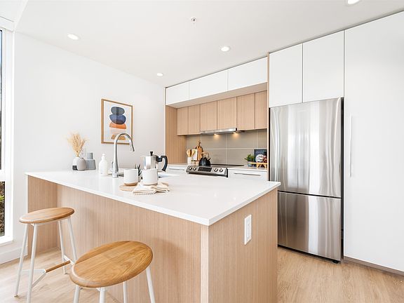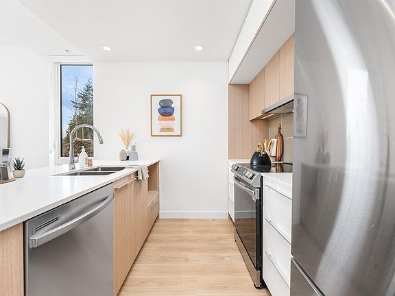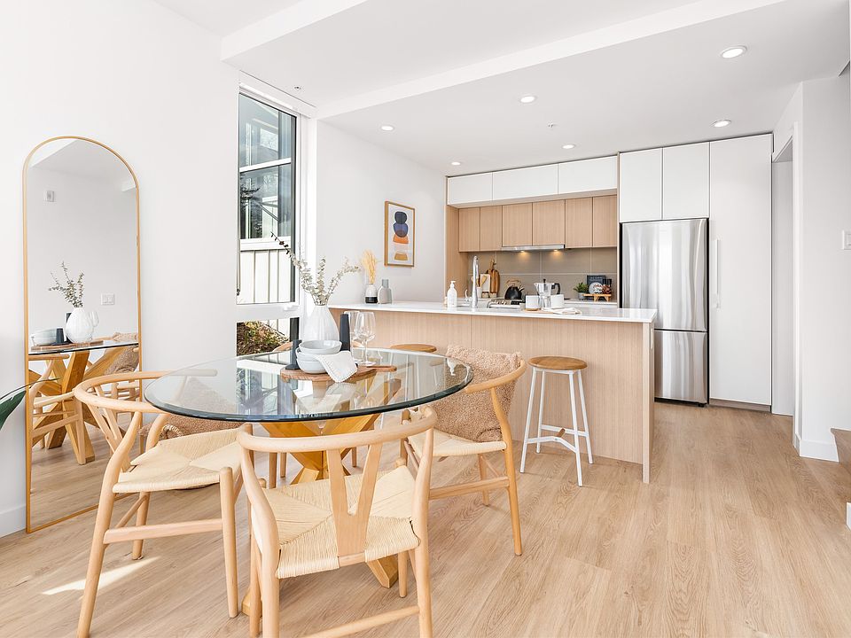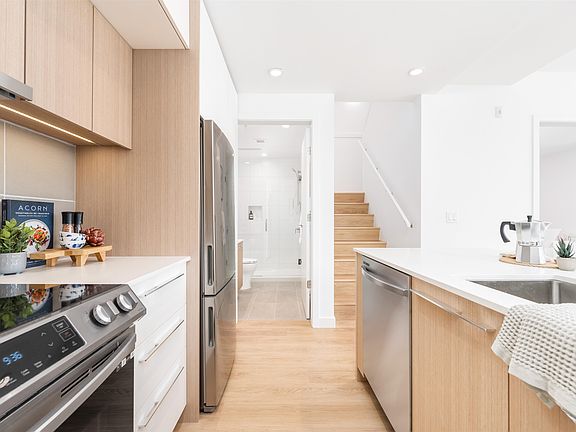 One of the final townhouses at Oslo! This bright, tastefully designed space features a beautiful kitchen w/ two toned cabinets and Samsung energy efficient appliances, 3 FULL BATHS, warm luxury vinyl plank floors, and a large patio backing onto the building's courtyard. Developed by Eighth Avenue Development Group w/ Scandinavian design principals and sustainable Heat Recovery Ventilation. This building and unit are uniquely positioned on the South Slope of Burnaby Mountain, offering privacy amidst the convenience of UniverCity. Amenities include multiple study lounges, a large party room, and an expansive social courtyard. All of this, just steps to coffee shops, Nesters Market, the bus loop, University Highlands Elementary, and countless amenities at SFU! Don't miss out!