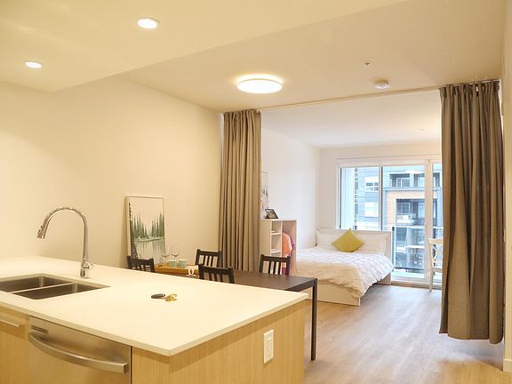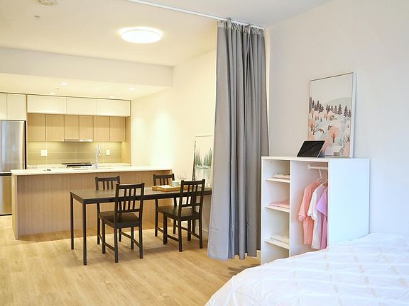 Oslo 413 9888 University Crescent, Burnaby BC V5A 0G4 Brand new junior 2 bedroom plus den with spacious balcony at Oslo, leveraging forward-thinking elements such as Passive House design principles, heat recovery ventilation technology, adaptable layouts, and a European aesthetic that uses quality materials. Amenities carry indoors to include private and public study hubs and a family-sized kitchen and dining area for large gatherings with loved ones. Scandinavian Living Standards. The home is furnished with a double bed in one room with a desk, separation by curtain and a queen bed in the other room with a desk, it comes with 1 parking and 1 storage locker. Soar above the clouds to be at the heart of the UniverCity Community, offering a landscaped courtyard with a collection of gathering spots for residents to relax and connect & children's play elements with an easy walk to trails, streams, restaurants, Nesters & Transit. Enquire today! MOVE IN FREE today and start your lease January 1, 2023 FEATURES: - 2 Bedroom + den - 1 Bathroom - Furnished - 616 SF - 1 parking - 1 storage - Balcony - Electric Range - Insuite Washer & Dryer NEIGHBOURHOOD: - 3 min walk to Nesters Market and all other amenities - hiking and biking trails Residents can access SFU's extensive facilities or spend their time exploring acres of natural forests through a vast network of hiking and biking trails in the Burnaby Mountain Conservation Area. SCHOOL CATCHMENT University Highlands Elementary (4 min walk) Burnaby Mountain Secondary (10 min drive) AVAILABILITY NOW LEASE TERMS Max. occupancy 2 adults or 2 adults and 1 child Small Pets Negotiable No Smoking Maintenance of Tenant insurance Move-in Fee payable to strata *if applicable Credit Check is a requirement Renter is responsible for electricity and internet. Owner pays for water and home comes with one parking and one storage. Home furnished with brand new furnitures.