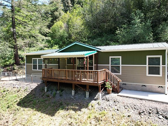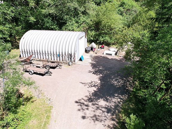 SELLER STILL ACCEPTING OFFERS!! UP-RIVER GEM Look no further for a beautiful, wooded, turn-key retreat offering an array of possibilities! Situated just 3.5 miles up the Chetco River on 7.99 acres and zoned Rural Commercial is a custom-designed 2022 Palm Harbor home, a fully insulated 24 x 28 American Steel detached two-car garage, a 30 x 40 quonset shop with power, two RV sites with power and water, as well as a second building site that could accommodate a 1200 sq ft structure. Overlooking a seasonal creek, the home offers comfortable living with its open-concept, split floorplan and with a covered front deck and back porch. The two spacious primary suites boast roomy walk- in closets and ensuite bathrooms with large showers. Beautifully designed with granite countertops, alder cabinets, and stainless-steel appliances, the kitchen and dining area offer ample room for cooking and entertaining. Throughout the home is attractive, low-maintenance luxury vinyl plank flooring. Outdoor living is enhanced by the covered 8 x 28 patio, ideal for soaking up the music of the creek and the birds. The 8 x 28 carport offers great convenience as do the sidewalks connecting the garage to the home. A lower driveway leads to the 30 x 40 shop with a 15-foot door and generously-sized gravel parking pads for boats, trailers, and other toys. From the shop, follow a cleared path to the second building site, perfect for an off-grid cabin. The property with merchantable timber abounds with salmonberries and blackberries for pies and jams; and the warmer upriver climate is ideal for a garden. In the winter, enjoy views of the Chetco. Located just up from Social Security Bar, this property could be your base for river fishing and fun with friends and family, especially considering the two RV sites near the front of the property. Or, take advantage of the zoning and use this versatile property for your home-based business. Come see what this exceptional property can offer you!