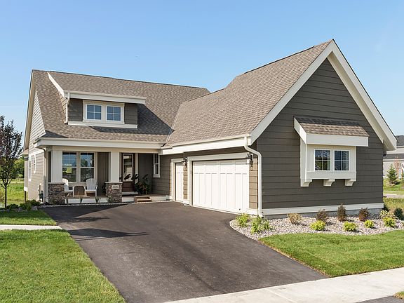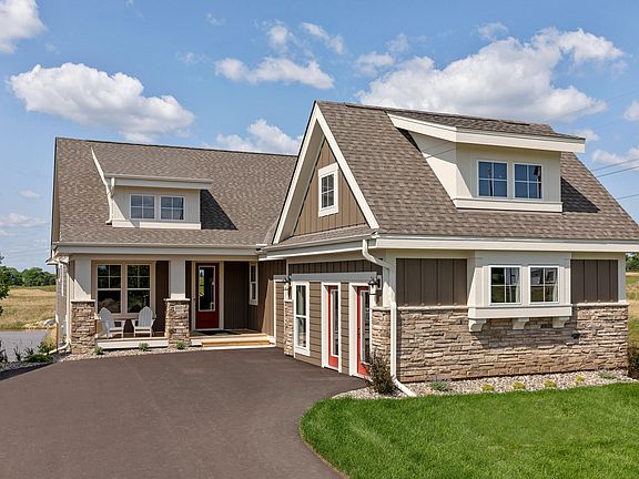 Timeless cottage inspired elevation with inviting full front porch columns and stone accentsLP SmartSide® prefinished siding with 4-sided architectural detail, including wrapped windows and trim boardsDramatic 12' ceiling in gathering room with wall of windows and optional coffered ceilingOpen transitional kitchen with custom cabinetry, window over sink, oversized center island, and spacious pantry with 8' glass doorOpen dining with windows and atrium door to optional four-season porch, screen porch, deck or patioConvenient main level laundry and hall with access to mudroom with optional bench or lockersTranquil main level owner's retreat with spa bath includes double vanity, soaking tub, large ceramic tile shower with glass panels, private water closet, and spacious walk-in closetOptional finished lower level with family room, bedroom, bathroom, and storage spaceOptional wet bar with lower level finishOptional 4th bedroom in lower levelHomeowner's Association provided lawn care and snow removal*Home prices refer to starting from price and do not include optional home elevations, options, upgrades, or lot premiums. Prices, square footage, and availability are subject to change without notice. Photos, virtual/video tours, and/or illustrations may not depict actual home plan configuration. Features, materials and finishes shown may contain options that are not included in starting from price.