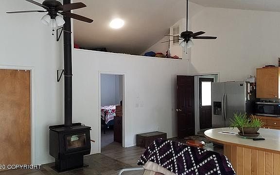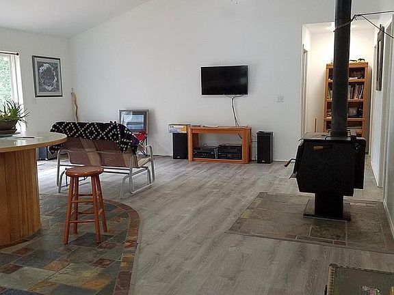 3 BR, 2 Bath well loved ranch home on approx. 1,675 foot grass airstrip next to Taxi Way and tie-down area. Tandem 2 car garage, ceiling fans. Large Master Bath w/washer & Dryer. Large south facing deck. Maintained yard, Wood and 2 Toyo stoves. Ceiling fans, lighted closets, arctic entry. Firewood storage and shed on skids. Well treed lot with plenty of cleared play area. Deep lighted crawl space