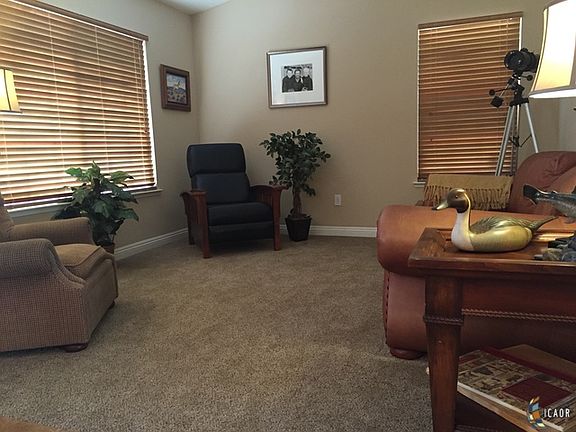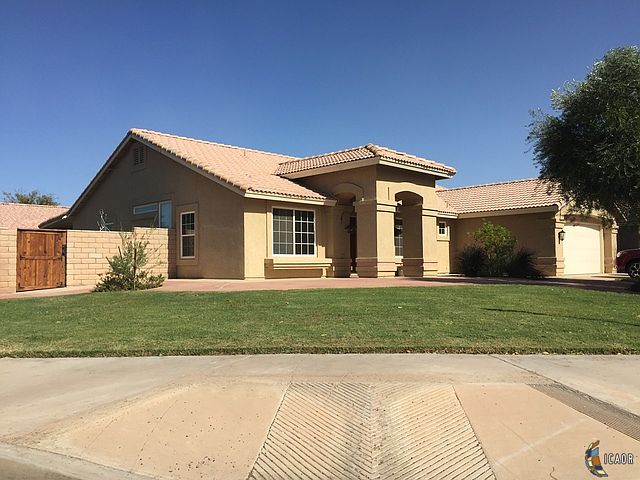 Beautiful home located in a desired area of Brawley, sitting on a corner lot, walking distance to the park. What more could you ask for? When you first enter this lovely home, you will notice the openness of the floor plan. To the right is the large dining area and to your left will be the living room. Continuing into the house will be the den/family room, TV area, kitchen with an eating bar and a breakfast nook. Many windows that are nicely covered in blinds. The master bedroom/master bath is located on the west side of the house and the remaining bedrooms are located on the east side along with the hall bath. The laundry room is extra large and it leads to the garage that has mega storage. From the den you will see the large covered patio, nicely tiled and perfect for entertaining. This home is a must see.