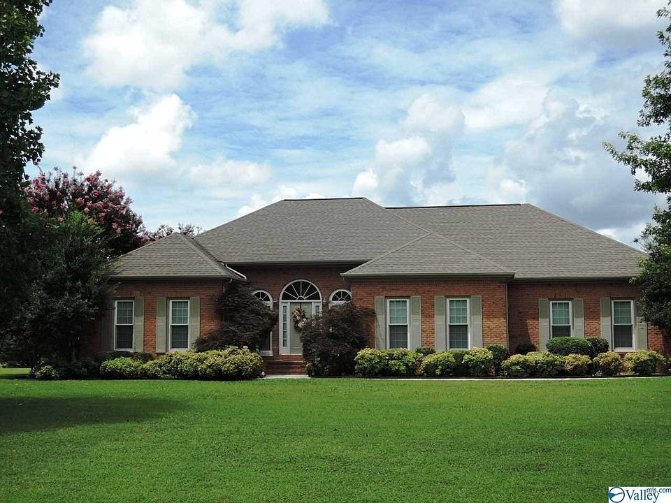 HARTSELLE AREA- Fabulous one level all brick home! Featuring hardwood floors, 10' ceilings through out home. 4 BR & 2 full BA. Carpet in BR 2,3 & 4, Tile in BA's, sun room, utility rm. Large family size living room w/fireplace, Kitchen features granite & SS appliances. Under counter lighting, breakfast room, Formal Dining room, Master suite with a very large glamour bath. 2 walk in closets. Hall BA tile w/tub/shower. Lots of closet storage. Crown molding everywhere, ceiling fans in almost every rm. Double garage w/ work shop area. Covered back deck. Beautiful back yard. Convenient to the I-65, down town Hartselle and schools.