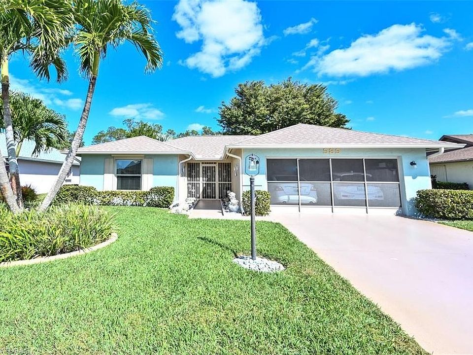 This well maintained 2BR/2BA home sits on a huge (.49 acre) lot in highly sought after Rivera Golf Estates. It has 1,344 s/f under air, plus a large 460 s/f screened lanai that looks out over a massive and nicely manicured back yard. Some of the home’s many features include an updated kitchen with newer cabinets, backsplash, stainless steel appliances and corian countertops; updated guest bath including vanity, sink and quartz countertop; large walk-in closet in the MBR; walk-in custom tiled shower in the MBA; and a 2-car garage with tiled floor, storage cabinets and electric EV charging outlet. It also has a well for lawn irrigation and a buried 250 gal. propane tank that feeds the stove/oven and gas grill. Riviera Golf Estates, a friendly 55+ community, is located just a short drive from Downtown Naples, beautiful beaches, great shopping and fine dining options. Community amenities include a new swimming pool, exercise room, tennis/pickleball/bocce courts, shuffleboard, billiards room, and a large clubhouse where many fun social activities are held. With an HOA fee of just $128/mo., Riviera Golf Estates continues to be one of the most affordable places to live in all of Naples.