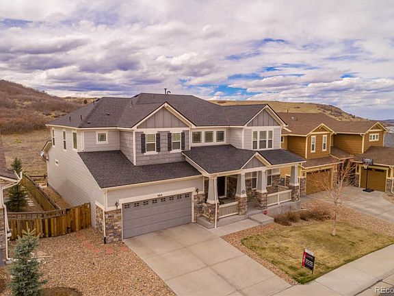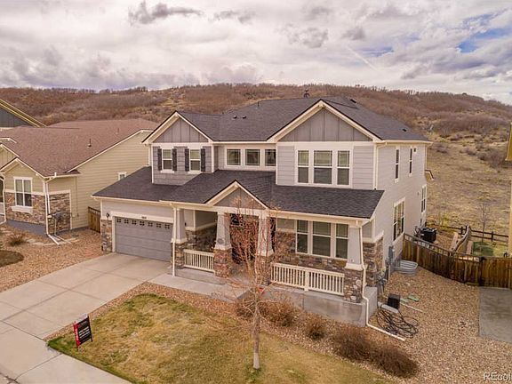Incredible lot location in The Meadows, in a cul de sac, backing to the Ridgeline Open Space trail and with stunning mountain views! You will not find a better lot than this -- it is a must see! Beautiful covered back patio faces the open space and trail. Professionally landscaped and fenced back yard. Main floor features a gourmet kitchen with stainless refrigerator, 5 burner gas cooktop, hood, double oven, 42" cabinets, underlites, upgraded backsplash, granite counters, huge island, pendant lights, eat in area, butler pantry and walk in pantry. That opens into spacious family room with vaulted ceiling, floor to ceiling rock accented wall, fireplace and mantel. Also on main floor are dining room, office, main floor guest bedroom, 3/4 bathroom, mud room and entry/foyer. Master Suite has incredible mountain views, coffered ceiling, ceiling fan, 5 piece bathroom and huge walk in closet with windows for added natural light! Two more bedrooms upstairs surround a full jack n jill bathroom. Upper floor laundry room opens in the Master Closet and includes washer and dryer! Spacious loft w/ceiling fan completes the upper level -- it can be easily converted into a 5th bedroom. 3 car garage. Wood floors, surround sound in several rooms and back patio, wrought iron spindles on the staircase, 2 zone furnace, Nest thermostat, Central AC. Full basement has cute finished dog "house". Adjacant to Open Space trail with access from the cul de sac, and a short walk to Bison Park and Clear Sky Elementary. Bison Park has play ground, picnic areas, turf fields, tennis courts! Low HOA fees includes use of TWO community pools.