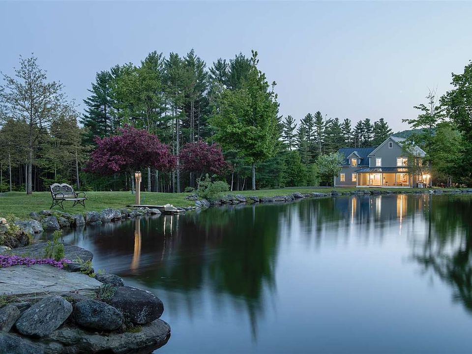 Private park-like sanctuary at prime Edson Hill address. Rainbow trout, island in the pond, summerhouse, guesthouse, gazebo, brook, bridge, waterfalls. Postcard living in a storybook landscape. Sun-splashed level groomed terrain. Love life in this existing home or, for those with ambitions to build something cutting-edge spectacular, and yet (because you’ll already have ample accommodations for guests and storage) not necessarily expansive . . . the edge of the ravine awaits with all-day sun and long views across the grounds to the mountains and ponds, and down into the brook. This site has been permitted for as many as additional 5-bedrooms. Four bedroom main home with full outdoor kitchen, screening room, bar, game room, and heated 2-car garage. Sun-filled pond-side summerhouse with living space, deck, balcony and loft. Cozy one bedroom guesthouse above auxiliary 3-car heated garage. Ideal open floor plan with hardwood flooring. Walking paths and roads through the forest edge and along and across the Peterson brook boulders and waterfalls. Polish the sports car in the warm finished garage. Catch the game in front of the cozy fireplace while chatting with the enthusiastic gourmet. Enjoy a leisurely stroll home after an indulgent dinner at Edson Hill Inn . . . and take a starlit dip in the deep cool pond. This property, at this strategic prestigious and prime location, presents a multitude of opportunities. Come live this dream. Most definitely a rarity in Stowe.