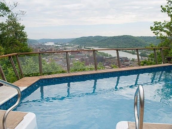 Breathtaking views of the Ohio Valley. 42 foot deck with heated pool. The home offers 5 bedrooms, 3 baths, 2 kitchens, 3 fireplaces, walk-in closets, 2 laundry rooms, over 4,000 square feet of living space. The lower level offers an entirely separate space that can be rented to help with the mortgage or used as a mother-in-law suite. Rental history of $1200 for lower unit and $2500 for upper.