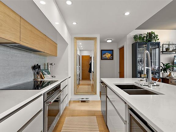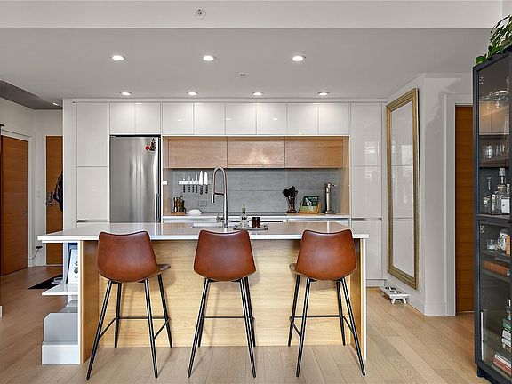 Welcome to 989 Johnson. This spacious one-bedroom, one-bathroom home offers an open concept layout and 180 square feet of private outdoor living space. Quality shines throughout this modern condo, with top-tier finishes and a clean, stylish design. The kitchen stands out with high-end appliances, quartz countertops, and sleek cabinetry. Oak floors and large windows bring in plenty of natural light and connect seamlessly to your own outdoor oasis. You’ll also enjoy practical features like in-suite laundry, secure parking, and extra storage. The location is outstanding—close to the harbour, trails, and every level of shopping. And on the main level, you’ll find a world-class 9,000 sq ft gym offering memberships, group classes, and personal training. This unit is pet-friendly, allows BBQs, and includes convenient guest parking and EV charging.