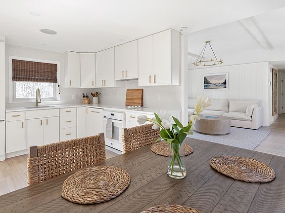 Located just 2.8 miles from Southampton Village and Towd Point, this beautifully updated 3-bedroom, 2-bathroom rental home offers the ideal summer retreat. Spanning 1,057 square feet, this inviting home features a bright and airy layout with elegant hardwood floors throughout. The newly renovated kitchen is the heart of the home, boasting sleek stainless-steel appliances and a modern glass tile backsplash. The sun-filled living room is centered around the TV and offering views of the grounds. All 3-bedrooms and 2-bathrooms, bright and refreshed, are conveniently located on the first floor. The lower-level recreation room provides additional living space, centered around the electric fireplace, and is enhanced by the natural light of the sliding doors with walk-out gravel lounge area just beyond. Step outside to your private oasis, where a large 18x36 pool is surrounded by expansive decking. This prime Southampton location is just a short drive to the heart of Southampton Village, where you'll find renowned dining, high-end boutiques, and picturesque ocean beaches. Towd Point, offering serene bay beaches, is equally close, ensuring you have the best of both worlds when it comes to coastal living.