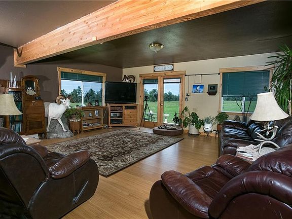Stykbow Ranch- 4 bed/3 bath home (2660 sq ft) in the middle of 407 deeded acres. Judith & Snowy Mountains views to the north & McDonald Creek Valley to the south. Acreage is 130 acres of hay ground & the rest is timbered ravines, meadow & pasture. Pasture is leased for 150 yearling cows during the summer grazing months. A mature spring runs through the property & feeds stock water tanks & 2 private wells. 4000 SF heated & wired Quonset hut & 3 bed/2 bath Nashua mobile for hunter lodging.