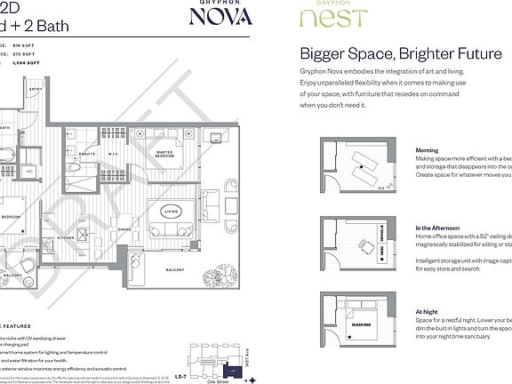 Experience elevated living in the heart of an emerging neighborhood. Gryphon NOVA redefines the art of modern living in South Oak. A rare offering in Vancouver West, a 9 storey concrete building with 43 residential homes with 10 strata offices and retails units. A truly connected home with keyless and touchless entry throughout, air and water purification system to protect your health, revolutionary interior design concept creating more usable space in a selection of 1,2,3 beds and Townhome units. State of the art amenities including Premium fitness centre, Nova Theatre, Private dining lounge, outdoor bbq garden and focus rooms for co-working Experience space. Living room measurement includes dinner room. GST. NOT included. Experience Gallery at 2762 Granville Street, open by appointments.