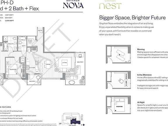 Experience elevated living in the heart of an emerging neighborhood. Gryphon NOVA redefines the art of modern living in South Oak. A rare offering in Vancouver West, a 9 storey concrete building with 43 residential homes with 10 strata offices and retails units. A truly connected home with keyless and touchless entry throughout, air and water purification system to protect your health, revolutionary interior design concept creating more usable space in a selection of 1,2,3 beds and Townhome units. State of the art amenities including Premium fitness centre, Nova Theatre, Private dining lounge, outdoor bbq garden and focus rooms for co-working Experience space. Living room measurement includes dinner room. GST NOT include. Experience Gallery at 2762 Granville Street, open by appointments.