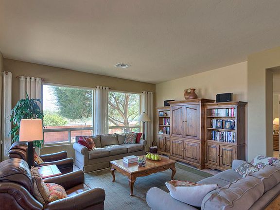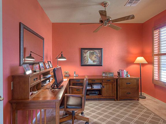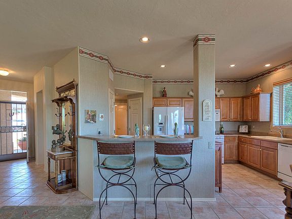 Spectacular home with terrific Mountain Views. Just a perfect home! 2 bedrm-split, 2 bath, den, laundry rm generous size w/utility tub, open great rm-walls of windows, gas range at kitchen-window above kit sink, higher ceilings,great storage, lovely designer upgrades through. Easy care landscaping with excellent views from the inside and the back patio. All tile floors. Newer HVAC--whole home nicely maintained