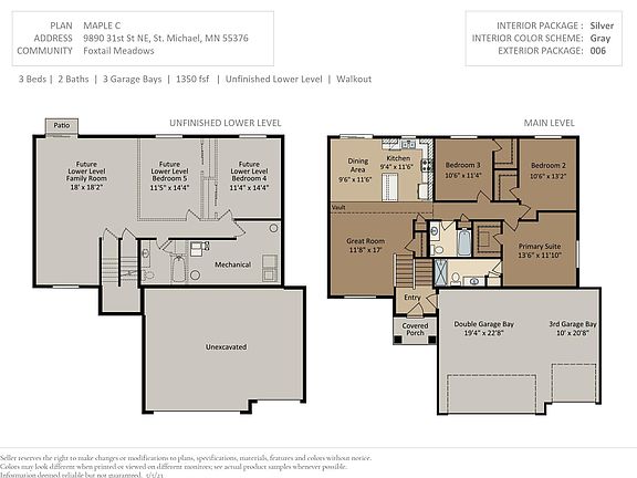 Home is scheduled to be excavated in June offering an estimated September/October completion. Located on a no outlet cul-de-sac street on a corner homesite. Home features include stone accents, Pella windows, unfinished walk out lower level, front yard landscaping, sod, & irrigation system. This plan is a modern styled split level home in a thoughtfully crafted open-concept plan. Main level boasts a vaulted ceiling, natural lighting & detailed amenities. Kitchen features a center island & window overlooking the backyard, stainless appliances, granite countertops, and painted white cabinets. Primary suite offers a walk-in closet & private bath. Two additional bedrooms include walk-in closets. Spacious lower level offers space for future family room, flex room, bathroom, plus 4th and 5th bedrooms. Photos and/or renderings may not depict actual home plan, features, materials, and finishes may vary. All measurements are approximate.