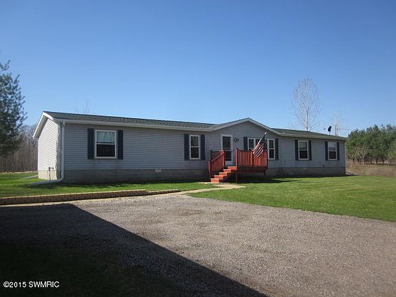 4 bedroom 2 bath home on 3.8 acres. Open floor plan with cathedral ceilings features kitchen with oak cupboards & center island that opens up to the dining area & spacious living room. Master Suite with walk-in closet & master bath with dual sinks, garden tub & shower.