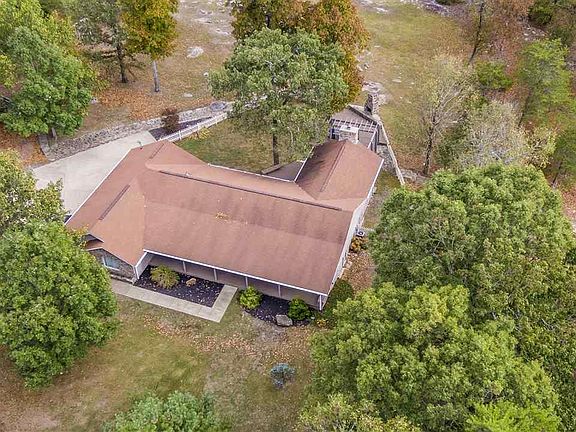 This Home will grab your Attention the minute you enter the drive!! Approx 2500 sq feet of One Level Living with Stone and Vinyl exterior, 2 bedrooms, 2 baths, with 15 x 23 Master Suite, Master Bath with soaking tub and seperate shower. Split bedroom design gives Master Suite privacy! Open living with family room, kitchen and dining rooms makes great for entertaining! 30 x 18 Greatroom w/vaulted ceiling, rock fireplace, book cases, hardwood flooring. French doors leading from Greatroom to outdoor living space with outdoor kitchen and beautiful rock fireplace. Hot tub and Generator are also included with this sale. Home is situated on approx 1.3 acres with beautiful rock formations.