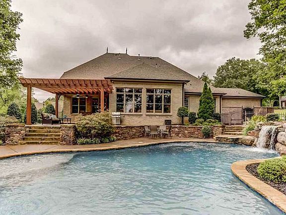 Cool Springs Gated Community! Tall ceilings! Open Floor Plan! Five bedrooms plus full-sized bonus room! Awesome exterior with pavilion-covered patio, pool, and gorgeous landscaping on this approx 1 acre lot. Pool features diving board and spectacular waterfall over grotto. Flex space upstairs perfect for teen space, media room, gym, etc. Hearth Room has floor to ceiling stone around fireplace, exposed beams at the ceiling + a wall of windows for the breathtaking view. 3 Car garage w/ huge additional parking pad.