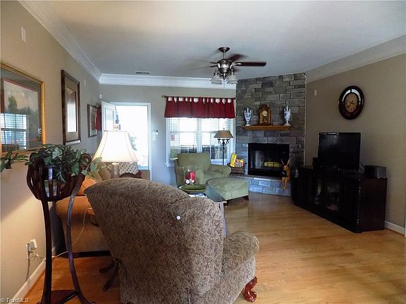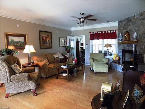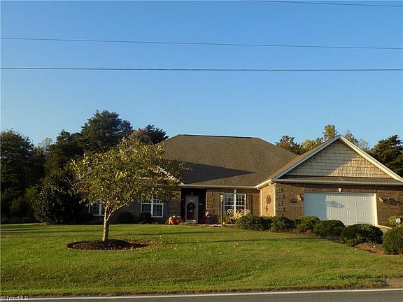 Gorgeous immaculate 1-story home with spacious rooms. Hardwoods in living areas. Huge enclosed porch not included in square footage. 3 storage buildings - 1 wired for workshop. Study possible 4th bedroom. Great fenced backyard for privacy. Very nice garage! Beautifully landscaped with circular driveway. Situated on 1+ acre lot on rural road. No HOA and easy commute to anywhere in the Triad.