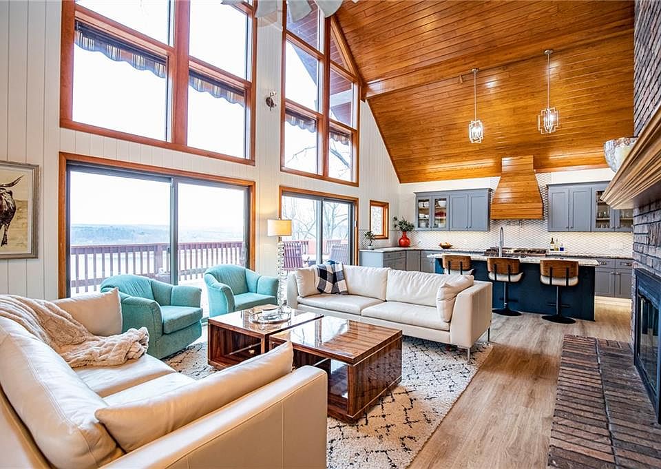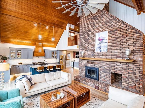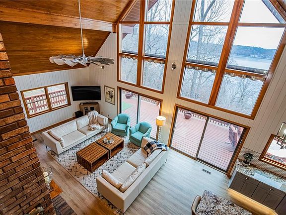 This charming lakefront home sits on a 3.53 wooded and landscaped park-like setting. A stunning wall of windows extending from the floor to the pine cathedral ceiling provides year-round views of the lake. Expansive double decks wrap around the sides and the back of the home to offer plenty of space to entertain or simply sit back in the hot tub and watch the view. Updates include remodeled kitchen and dining room, new stainless appliances, flooring, farm sink, pot filler, granite, paint, fixtures, LED can lights, new furnace, new HVAC compressor, and new water heater. The 3 car garage workshop is heated and cooled and has plenty of storage. The private drive offers plenty of parking. The main living room, kitchen, dining, and 2 bedrooms can be found on the main level. The upstairs has a loft area for an office nook, 2 beds, and 1 full bath. The downstairs can be made into a mother-in-law suite or second living area. Minutes from downtown Rogers. 7 Minutes from Horseshoe Bend Marina.