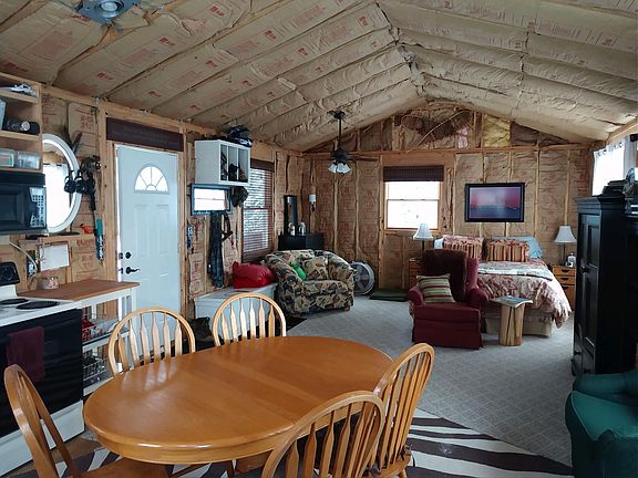 Can you say R-E-L-A-X and UNWIND!! Secluded and nestled in the woods atop a hill, you will find a cute little "get away" cabin with tons of potential! Sellers have spent many wonderful years enjoying nature, quad riding, bonfires, coffee sipping and story telling. Watch the rain fall from your covered porch or sit inside and enjoy the view from the large picture windows! Enjoy the warmth of the wood burning stove on a chilly evening as fall/winter start to creep in. You will be surrounded by BURSTS of color as summer turns to fall. If hunting is your thing, you are in the right place...bird or deer! If you prefer golfing, Wedgewood on the Green is within a few miles. Like to ski? Caberfae is approx. 15-20 minutes away. Fish? Lakes Cadillac and Mitchell are approx. 10 minutes away. Snowmobiling is also on the list of fun things/activities to do...just a mile down the road are groomed trails!! The seller has constructed a 24 x 20 pole barn, which needs some finishing touches, but is capable of storing whatever toys you have. There is a garden shed and wood shed also available on the property. The walk out basement was put in in 1991, cabin built in 2008 for a total of 960 sq ft. The home and pole barn sit on 3 plus acres and there is another 2 acres across the road which has a deer blind and an old road that runs through it! You do not want to miss out on viewing this unique piece of property!!