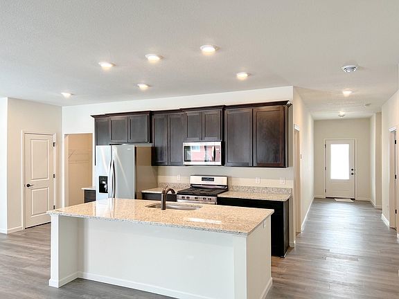 Your family will love the layout of this charming rambler-style home with three bedrooms, two bathrooms and an incredible, open space for entertaining. The modern kitchen features upgraded cabinets, a full suite of stainless steel appliances, and a breakfast bar island perfect for enjoying a cup of coffee or an afternoon snack. The family room is an open canvas for you to arrange and decorate in your own style, and it includes access to a back yard deck. A four-season porch with a fireplace gives you the flexibility of a second, separate entertainment area. Owners will find a true retreat in their private suite tucked-away at the back of the home and featuring a walk-in closet and attached bathroom with an oversized step-in shower and dual-sink vanity. This home is located in Miske Meadows, the serene neighborhood of single-family homes where homeowners enjoy easy access to an array of amenities.