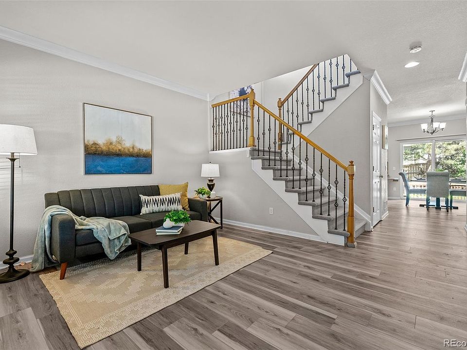 Welcome to 9893 Thornbury Way, a charming 2-story residence nestled in the coveted Westridge Knolls neighborhood of Highlands Ranch. This spacious home offers convenience and comfort with a prime location within walking distance to top-rated schools. The main floor features a welcoming foyer leading to a bright and airy living room, perfect for entertaining guests. A well-appointed kitchen with modern appliances and ample cabinet space opens to a cozy dining area overlooking the landscaped backyard, ideal for enjoying morning coffee or evening meals. Upstairs, discover three generously sized bedrooms along with a large primary bedroom retreat complete with an en-suite bathroom and expansive walk-in closet, providing a peaceful sanctuary. An additional bedroom is located in the basement, offering privacy and flexibility for guests or a home office. The home features granite counters, crown molding, and new luxury vinyl flooring and new carpet!
