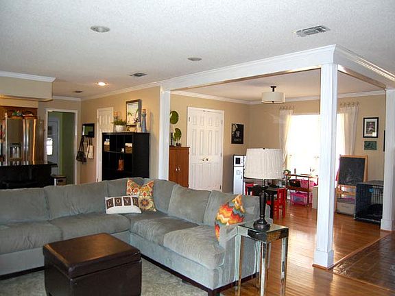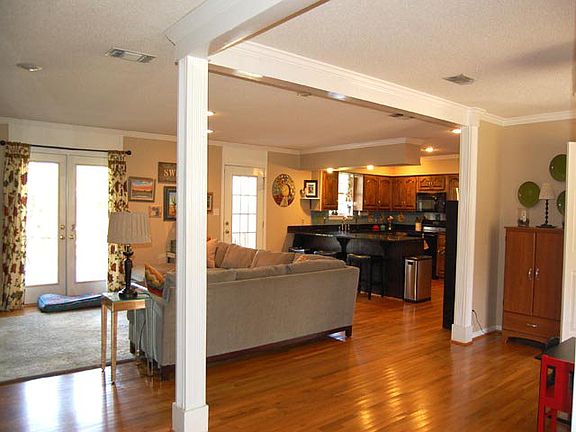 Like country living? Gorgeous open design has large 18x18 deck overlooking expansive rear with large Pecan and fruit trees, beautiful plants, and space for bikes, trikes, or baseball - you name it! Inside has crown molding, recessed lighting, granite counters, eating bar & 11x4 pantry in kitchen,columns separating DR/LR areas, mudroom & MORE! Nice views & room to roam!