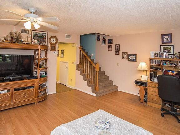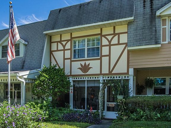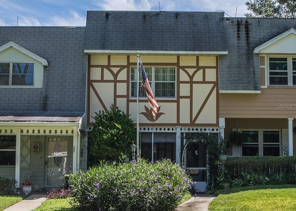 Very nice 2 story, 2-bedroom 2.5-bathroom town home with TWO carport spaces, located in a cozy European looking neighborhood with great views of the park-like setting and gazebo from the front porch. This move in ready home in Americana Village features laminate flooring in the living areas (5/2018), cozy brick fireplace, newer shower stall (10/2016), a/c (2015), roof (12/2011), refrigerator (4/2017). It also features an open kitchen, conveniently located 1/2 bathroom for your guest on the bottom floor, inside laundry area, two huge bedrooms upstairs with plenty of closet space. The home has a covered front porch and fenced patio. Americana Village is located in On Top of the World, Ocala's premier, gated, 55+ community, loaded with amenities, including golf cart access to two shopping centers.