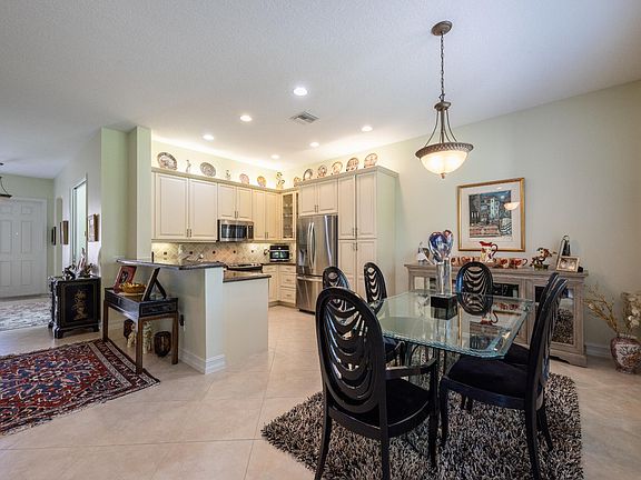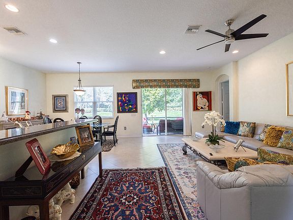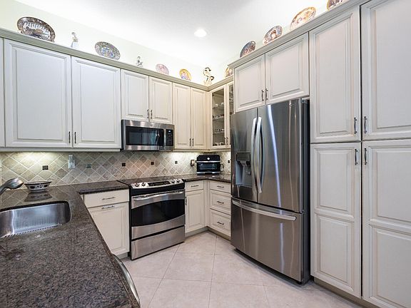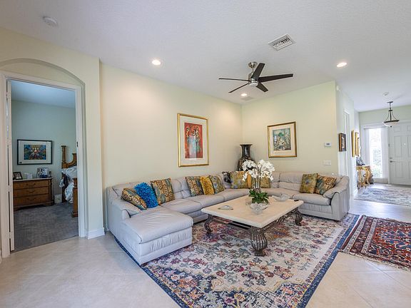 Popular Sophia model in Valencia Reserve. Two bedrooms plus den; extended screen enclosed patio; oversize lot with tropical landscaping. Hurricane impact glass windows; AC installed 2021. Open kitchen with upgraded cabinetry, granite countertops and stainless steel appliances. Valencia Reserve amenities include: 41,000 sf clubhouse, resort style pool, fitness center, tennis, cafe and theatre. Manned security gate. Active age 55+ community.