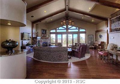 A majestic 65 acre ranch located in beautiful Franktown. Upscale main level living with fabulous panoramic views & nestled in the pines. The location is perfect for a quick trip to Castle Rock or Denver for shopping and great restaurants. Easy access to Denver International Airport for travel also. Hiking in the rock formations of Castlewood Canyon State Park is minutes away.*This fabulous home offers over 4,000 sq ft of high quality amenities.4 bdrms, office, 4 baths and an oversized 4 car garage.
