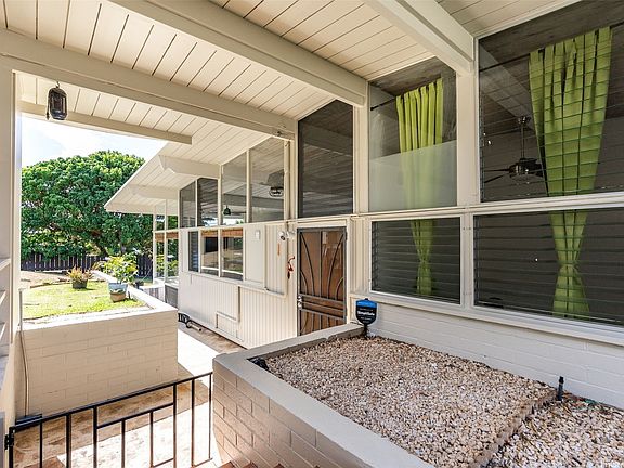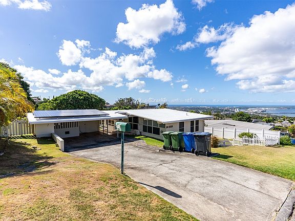 This delightful mid-century home offers an open, airy feel with high ceilings and breathtaking views of the harbor and sunsets. With 3 bedrooms and 2 bathrooms, the home has been thoughtfully updated with fresh paint inside and out, laminate flooring throughout, and modern upgrades like an updated electrical panel, split AC units, and 18 owned PV solar panels. The open-concept layout floods the space with natural light, thanks to large windows that frame the stunning surroundings. Situated on a spacious 10,000+ sq ft lot, the property is mostly fenced—ideal for pets or children to play safely. Located in the serene Orchard Hills neighborhood of Aiea Heights, this home offers the perfect balance of tranquility and convenience, with easy access to shops, dining, and freeways. Come see why this should be your next home!
