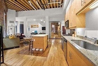 No Fee! Authentic Brick + Beam Loft in Bostons vibrant Waterfront neighborhood, one block from the Trillium Beer garden is this classic 1870's Brownstone . Located on the edge of Faneuil Hall, the Financial District and the Waterfront, this sunny one bedroom loft has an open floor plan and features exposed brick, 13' high beamed ceilings, large windows & hardwood floors throughout. Convenient to the bustling Seaport, the T, South Station and the North End. The professionally managed building features a secure lobby with a doorman & an elevator. The unit greets you with an entry way leading into the spacious home. A corner unit, it boasts morning/afternoon sun and is on the quiet side of the building. The space comfortably accommodates living, dining and a study space, plus a large sleeping wing with a generous closet. The kitchen is equipped with custom maple cabinets, stainless appliances and granite counters. The bath is finished in stylish marble countertops. Private laundry too!