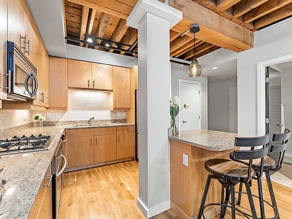 Own a stunning industrial loft-style one-bedroom along the Greenway in one of downtown Boston’s most desirable neighborhoods. This unique home features exposed brick, hardwood floors, and wood-beamed ceilings, blending historic charm with modern comfort. A large open floor plan living area features a spinning TV mount between living area and bedroom to add versatility to the space. The spacious bedroom boasts a large window that fills the room with light, TV mount, & a custom closet for optimal storage.The high-end kitchen boasts stainless steel appliances, granite countertops, ample storage, and a breakfast bar. The full bath includes a shower/tub & in-unit laundry Broadluxe is a professionally managed elevator building with an on-site superintendent, mailroom, bike storage, and deeded basement storage. Located next to the Rose Kennedy Greenway, Boston Harbor, Faneuil Hall, Seaport, North End, and FiDi. parking avail nearby