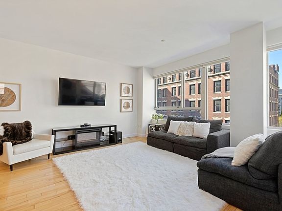 If you are looking for a renovated, bright & sunny home w/Private Outdoor Space this upper floor corner front unit is a must see! Rare layout with a large primary bedroom w/en-suite bath & steam shower. A second bedroom & a second full bath w/tub opens to a light filled open floor plan living and kitchen that leads direct to your own private out door space w/beautiful Greenway & city views! Large renovated kitchen offers granite counters, stainless appliances, breakfast bar, ample storage, wine fridge, window over sink and more. Hardwood floors throughout. Laundry in unit. 2 heat zones. Deeded storage. Broadluxe is a boutique elevator building on the Greenway w/building superintendent, bike & mail room. Located between the bustling Financial District &Waterfront areas next to Boston Harbor, Faneuil Hall, North End & Seaport! Easy access to public transportation, highways & Logan airport. Valet Garage space avail for additional