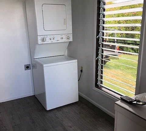Newly renovated. Spacious 1 Bedroom unit in a peaceful & quiet area. Bedroom has a ceiling fan & living room area has A/C unit. New stove & microwave. Kenmore refrigerator w/ice maker. Kenmore stacking washer & dryer in unit Parking is open air next to the stairs to the unit. A reduced monthly rent of $1,500 is applicable with proof of Military, College Student & Section 8 status Security Deposit equal to 1 months rent. Rent includes Water, Electricity, & 1 Parking Stall 2 people maximum