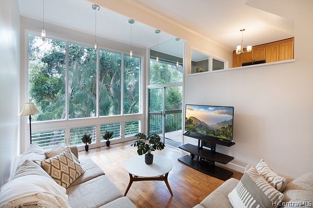 Townhome living at it's finest at gorgeous and serene Aina Lani Estates nestled atop Aiea Heights. This perfect location has an "away-from-it-all" feeling, but you are very close to any city need! This 3/2.5/2 unit is amazing and move-in ready. Voluminous, vaulted ceilings and giant picture-windows provide tropical forested views in almost every room. Featuring rich and quality oak/hardwood, marble tile, travertine, granite for materials and modern fixtures upgraded throughout, this property is a true gem. Also: a 2-car carport, stacked washer/dryer, spacious storage, a fantastic covered lanai! Grounds offer plenty of green space, pool and club-house, outdoor picnic tables, walking path, and even an entrance to popular hiking trail! Come experience the allure of Aina Lani Estates!