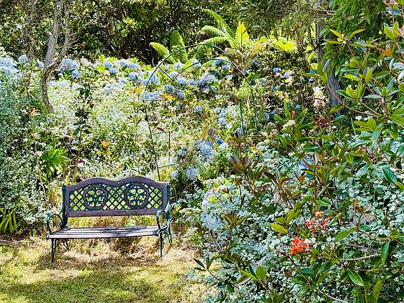 Enhanced privacy and charm with redwood fencing and backing onto Bishop Estate land.