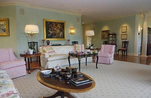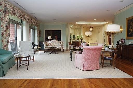 This palatial floor-through Penthouse residence with private elevator entrance to a grand foyer with skylights and inlaid floor is highlighted with an abundance of light, 12' ceilings, a grand piano sized 35' living room with custom moldings and a large southwest facing balcony with tree-top view:. A baronial dining room with coffered ceiling and wainscoting, and a handsome 20'x14' wood paneled library featuring a marble fireplace surround, and leaded glass cabinet. The kitchen is spacious with an island and a large dining area with pretty views. There are 3 or 4 bedrooms. The master has a large private balcony overlooking 14 acres of a Japanese inspired landscape, a sitting area, stupendous custom storage and a skylit bath! One entire hallway is devoted to cedar lined closets. A home office or 4th bedroom contains plentiful custom cabinetry, shelving, and a huge walk-in storage closet. Three car garage parking! Only a minute to Chestnut Hill's fine restaurants and shops.