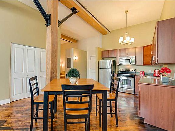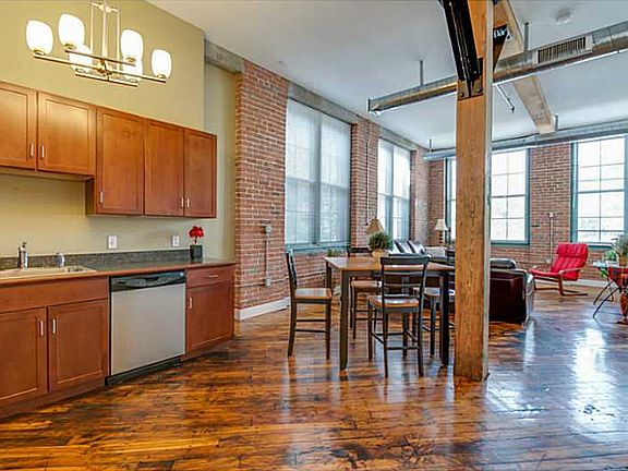 1st floor corner loft condo with dramatic brick walls and high ceilings. Open concept great room and kitchen, plus 1 bedroom and den. Laundry in unit, storage in basement. Be a part of this amazing community!