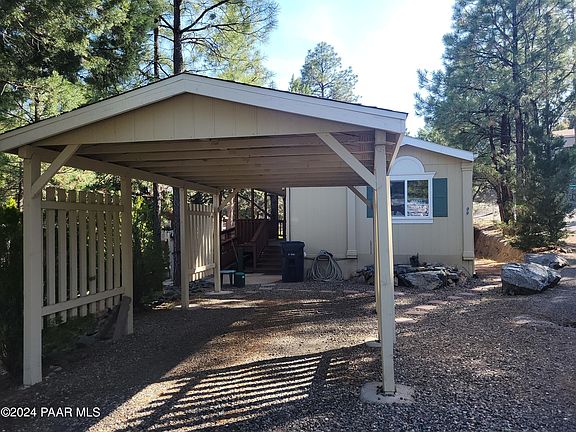Welcome to Pine Lakes in beautiful Prescott, Arizona! This lovely 55+ active community features amenities such as swimming pool and jacuzzi, workout room, billiards, tennis court and pickleball, club house and two beautiful lakes with walking paths around them. Located just 5 miles from downtown, but tucked in this quiet community beneath the tall pine trees, the location is the best of both worlds! This affordable 3 bedroom, 2 bathroom manufactured home is just the place to settle down after a day of activities! Sip your coffee while taking in the fresh air on your covered patio. This home is located on leased land currently $1100/month. There is no HOA, so your lease payment also affords you access to the long list of amenities offered at Pine Lakes. Come take a look today!