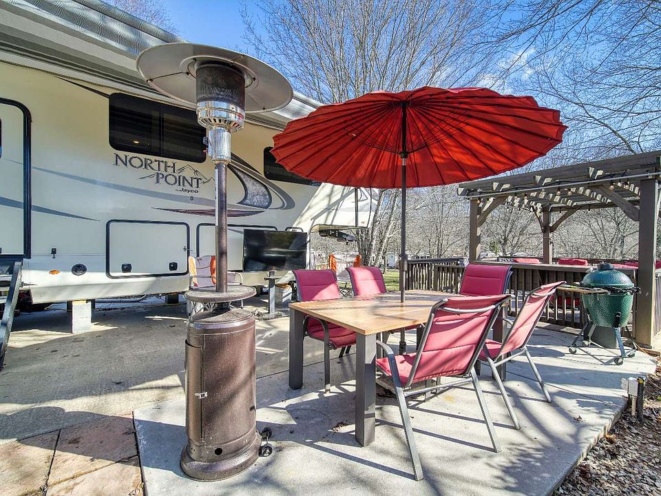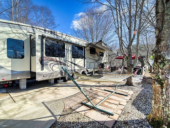 RV Lot + 2018 Jayco Northpoint RV that has been gently used as a fun vacation spot. Join in the fun & excitement Arrowhead Valley offers in this 41.3 ft furnished RV w/ 4 slide outs, 2 awnings, Lg living Rm, big kitchen w/ island, full size pantry, fireplace, generous shower, queen bed, lots of storage & cabinetry. It even has an OUTDOOR KITCHEN! The living room has an electronic extra bed that comes down for guests or an extra sleeping area. Beautiful view of pasture and fields while relaxing on the large deck with built-in bar. You'll be maintenance-free as community cuts your grass! The HOA fee covers ITI internet, Community Pool, pavilion, road maintenance, sewer, grass cutting, and garbage disposal. An insulated shed holds your outdoor gear. Owner will consider financing with 50% down. Bring your toothbrush and start enjoying easy mountain living!