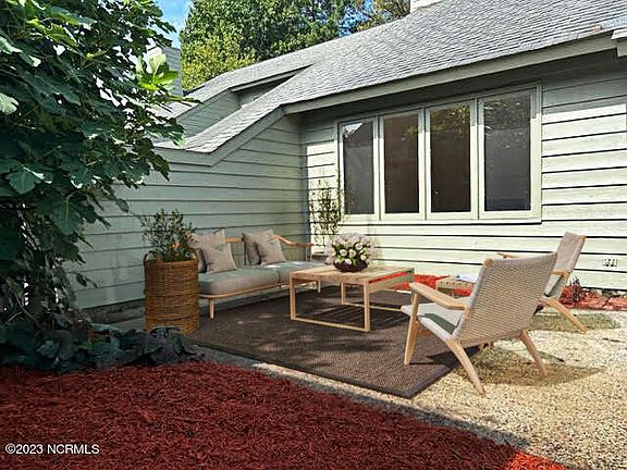 Easy living in this lovely 3 bedroom Plantation Landing townhome. NOT IN A DESIGNATED AE FLOOD ZONE. A real plus is the single car garage with direct access into a cozy and private is a single car garage leading into a private front 10 x 17 foot courtyard, Roomy enough for outdoor seating and gathering with friends.This unit is towards the end of the road, affording privacy with little traffic. At the back of the first floor sits a 10 x 10 enclosed carolina room perfect for a seasonal place to relax and hang out. Updated kitchen with shaker cabinetry and corion countertops. Wood burning fireplace is a central focus in the vaulted ceiling livingroom with bookcases flanking each side. The 2nd floor has multiple uses with a full bath which could be the master or utilize one of the two first floor bedrooms for the primary bedroom. It's nice to have those options.