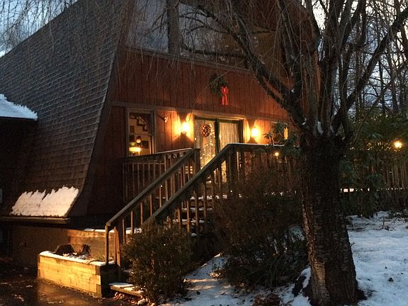 This contemporary chalet has an open floor plan with cathedral ceiling. It features two upgraded heating systems -- a heat pump for heating and cooling and an oil-fueled boiler for heat and hot water. The current owner has replaced the roof, totally renovated the kitchen, installed a Bath Fitter soaking tub, painted the exterior and landscaped around the home, which is located on nearly one acre of mountain land a short distance from Danville Middle School and the Danville business district.