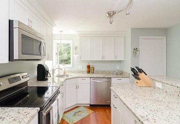 Meticulously maintained Cape located on desirable Bay Shore Drive! Brand new kitchen featuring center island, granite countertops, and a spacious,open feel. Large dining area leads to back deck overlooking lush yard with storage shed. The living room has a newly installed propane stove that will keep you nice and toasty on cold nights! Juliette balcony located off the family room provides seasonal ocean views. Upstairs the spacious master bedroom features sky lights and oversized master bath with soaking tub. 2 additional bedrooms and full bath complete the upstairs. 2 car garage with additional storage and office space in the basement. Hardwood floors throughout the first floor, newly installed flooring upstairs, second floor laundry, amazingly spacious yard with privacy, this home has everything you have been looking for!! Beautiful quiet neighborhood with easy access to Rt 3, Rt 3A, and all the area beaches!! Come see this gorgeous home today!