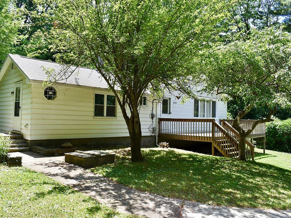 As though just under three acres of bucolic property isn't enough, the back abuts substantially larger parcels, including a farm. Country living at its finest without the mass parcel tax bill. That's just the beginning of perks with this home and property. The tranquil setting includes a 100+ year old stone wall flowing along the backdrop. This special property offers opportunity for discovery, exploration and nooks for reflection with nature. Treasures abound and await the curiosity of an appreciative buyer. When ready to come inside, two generously sized bedrooms feature period hardwood floors awaiting beam to original glory with minor refinishing. Recently updated full bathroom. The living room and adjacent over sized deck enjoy beautiful views and sounds of nature; including birds quite content frolicking among specimen trees imported from around the world specifically to take root on this special property. Careful what you cut down here, for certain. New windows throughout capture beautiful views from every angle. This home and property can be enjoyed as a full time residence or weekend retreat; as is or expanded with ranch being the easiest style to renovate. Easy access to the Taconic State Parkway, the Village of Rhinebeck (and Rhinecliff train) and the Village of Red Hook. This is a treasure on every level. Might not want to wait on this one.