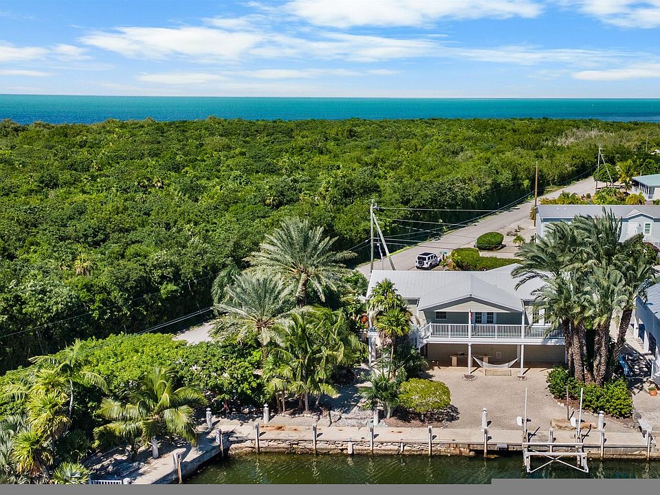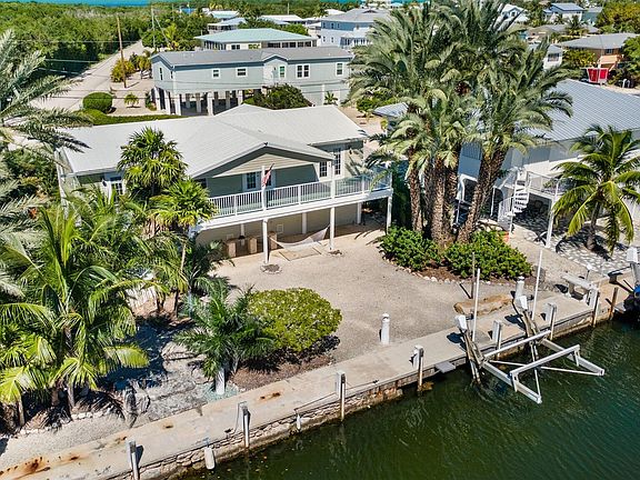 Embrace refined island living in this waterfront home, where tropical serenity meets effortless sophistication. Perfectly positioned on a lush corner 9,255 sq. ft. lot framed by stately date palms and vibrant landscaping, this coastal sanctuary captures the essence of the Florida Keys lifestyle--relaxed, elegant, and immersed in natural beauty.Step inside to 1,478 square feet of beautifully maintained living space featuring three bedrooms, two baths, and an enclosed two-car garage below. Freshly painted and move-in ready, the home offers a bright, open interior that complements the tranquil outdoor setting.Designed for the ultimate waterfront experience, this property boasts a private concrete dock and boat lift with an 'L'-shaped configuration--84 feet on one side and 27 feet on the other--for approximately 111 feet of total dockage. Whether setting out for a day on the water and world-class fishing or savoring the east-facing expansive porch, every moment here feels like paradise. Enjoy quick bay access and ease of ocean access via Vaca Cut or the Seven Mile Bridge. Outdoors, the expansive corner lot is a living work of art--landscaped with towering date palms, mango tree, and lignum vitae. Meandering paths lead to serene sitting areas tucked among the greenery, offering opportunities for relaxation or entertaining under the swaying palms. There is ample space to add a pool and create your own private resort-style oasis.Located in one of Marathon's most desirable neighborhoods near shops, dining, the Marathon Airport, boat ramp, bike path and more, this exceptional property blends comfort, convenience, and luxury. Whether as a full-time residence or exclusive vacation getaway, this property embodies the very best of Florida Keys waterfront living.